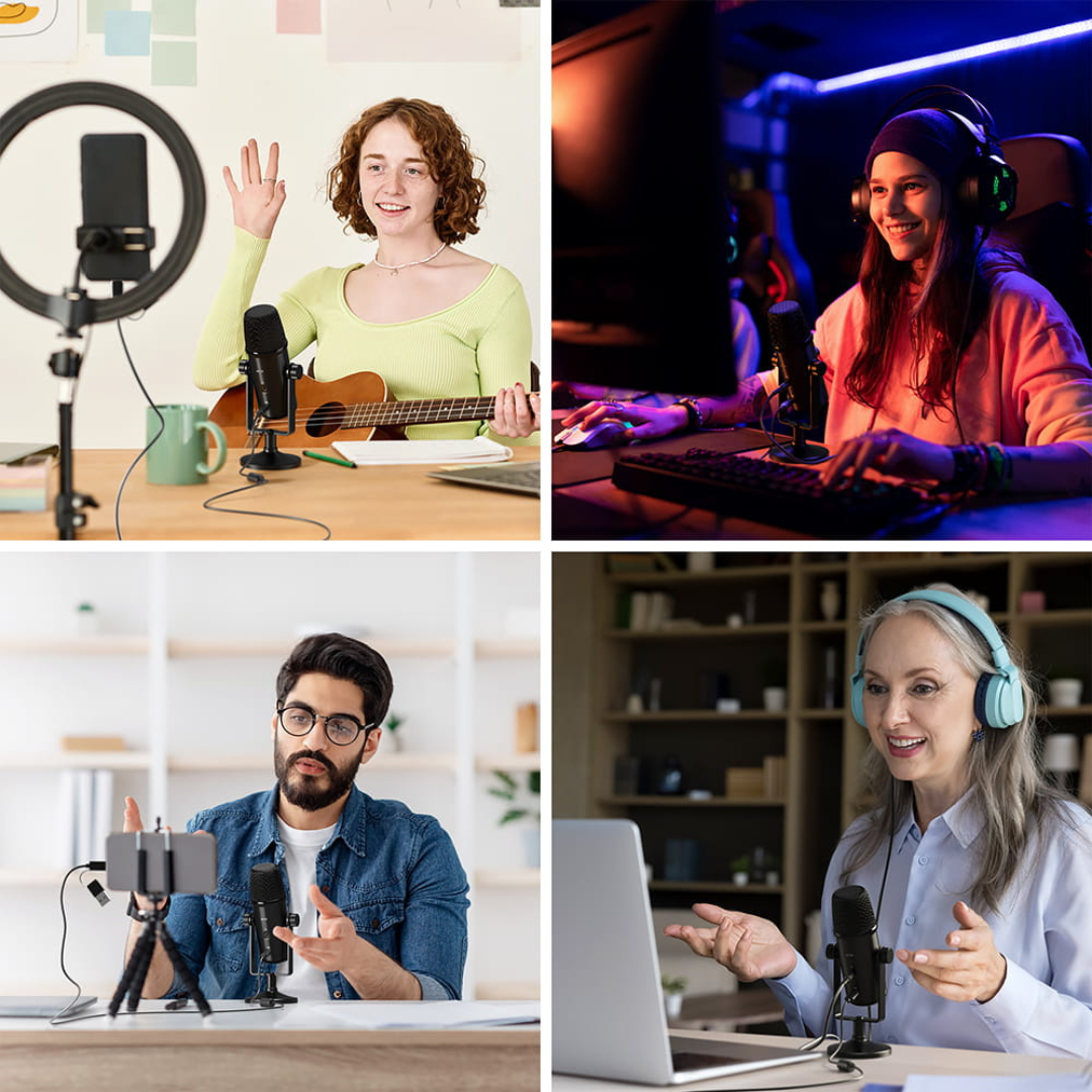 Mikrofona priekšrocība ir tā plašā saderība. Izmantojot komplektācijā iekļauto USB-C kabeli ar USB-A adapteri, mikrofonu var izmantot ar viedtālruņiem, planšetdatoriem, datoriem vai spēļu konsolēm. 3,5 mm TRS mini ligzdas savienotājs ļauj pievienot austiņas un pastāvīgi uzraudzīt skaņu. Darba ērtības nodrošina vienkārša darbība - kapsulas priekšpusē ir divi kloķi, augšējais regulē mikrofona jutību, bet apakšējā regulē klausīšanās skaļumu. Īsi nospiežot augšējo pogu, varat arī uzreiz izslēgt mikrofonu. Virs pogām ir diode, kas informē par darbības stāvokli. Zils nozīmē, ka mikrofons ir ieslēgts un gatavs darbam. Sarkanā krāsa norāda uz klusumu.