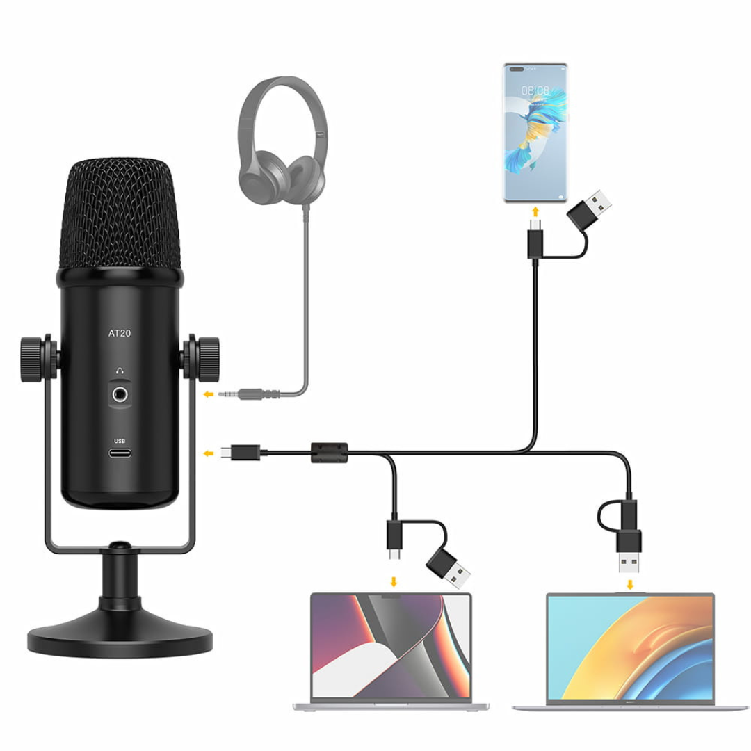 AT20 ir 7Ryms kondensatora mikrofons, kas aprīkots ar 16 mm diafragmu un iekšējo pop vāciņu, kas pasargā to no ūdens daļiņām. Kardioīdais polārais raksts padara to lieliski piemērotu mājas studijai — to var veiksmīgi izmantot YouTube lietotāji, straumētāji un satura veidotāji. Tas nodrošina dabisku, ausīm patīkamu skaņu bez nevēlamiem trokšņiem vai traucējumiem.