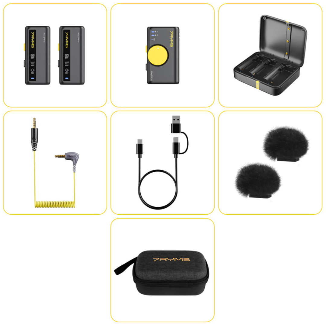 Bezvadu mikrofonu komplekts 7Ryms iRay DW10 var darboties ar ierīcēm, kas aprīkotas ar 3,5 mm mini ligzdas savienotāju - kamerām, videokamerām vai skaņas ierakstītājiem, kā arī ar viedtālruņiem un datoriem ar USB-C pieslēgvietu . Komplektā ietilpst divi kabeļi - 4 kontaktu 3,5 mm TRRS mini ligzda un divpusējs USB-C kabelis ar papildu USB-A adapteri. Mikrofons darbojas arī ar iPhone 15 (USB-C).
