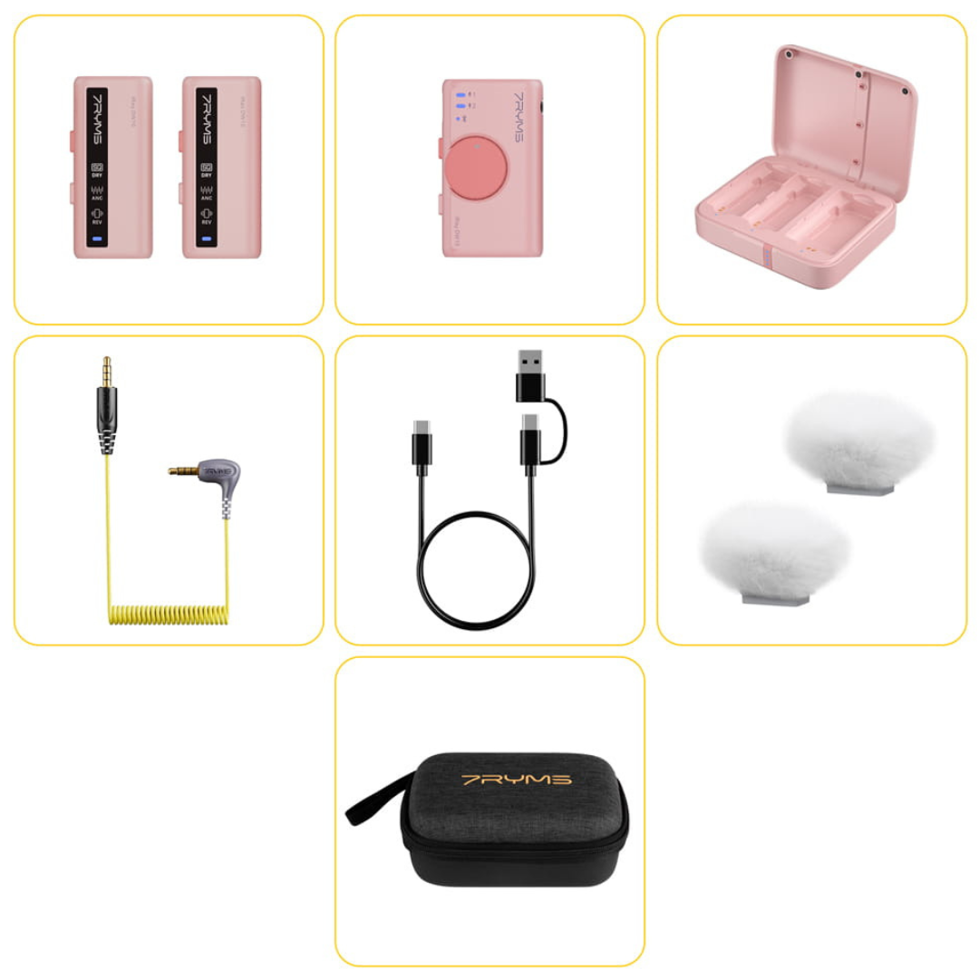 7Ryms iRay DW10 bezvadu mikrofonu komplekts (3,5 mm/USB-C), rozā krāsā