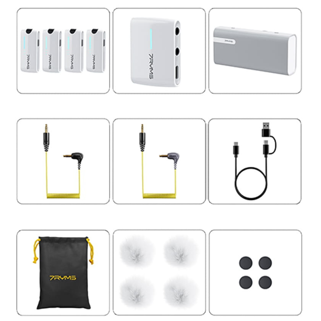 7ryms iRay DW40 bezvadu mikrofonu komplekts ir inovatīvs risinājums, kas paredzēts audio un video satura veidotājiem. Tas ir paredzēts darbam ar kamerām un digitālajām kamerām ar 3,5 mm mini ligzdas pieslēgvietu , galddatoriem un klēpjdatoriem un viedtālruņiem ar USB-C savienotāju. Tas ir pilnībā savietojams gan ar Android ierīcēm, gan atsevišķiem Apple tālruņu modeļiem (iPhone 15. paaudze). Iekļautie kabeļi – divi analogie kabeļi (3,5 mm TRS-TRS un TRS-TRRS mini ligzda) un abpusējais USB-C ar USB-A adapteri – ļaus izveidot savienojumu ar gandrīz jebkuru ierakstīšanas ierīci.