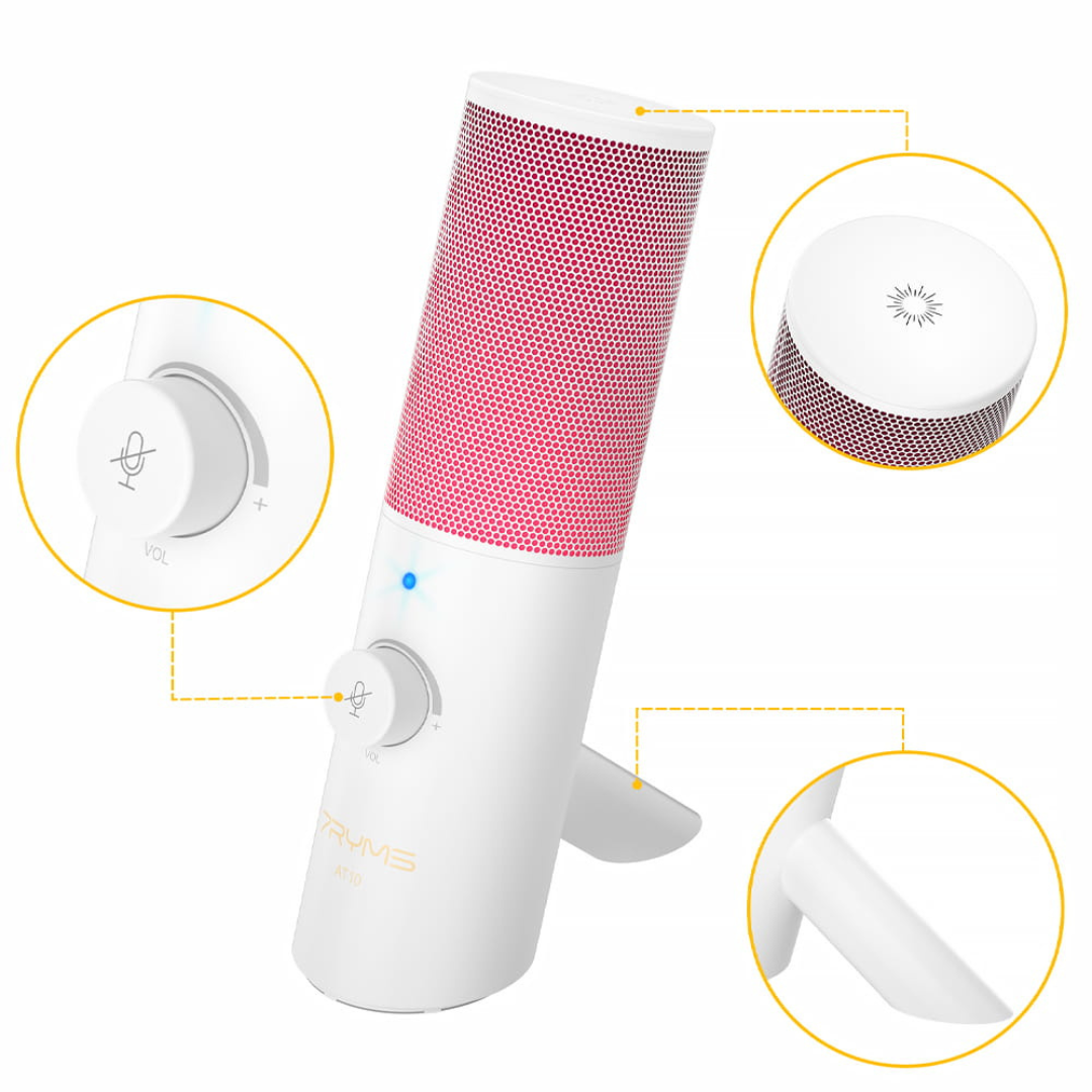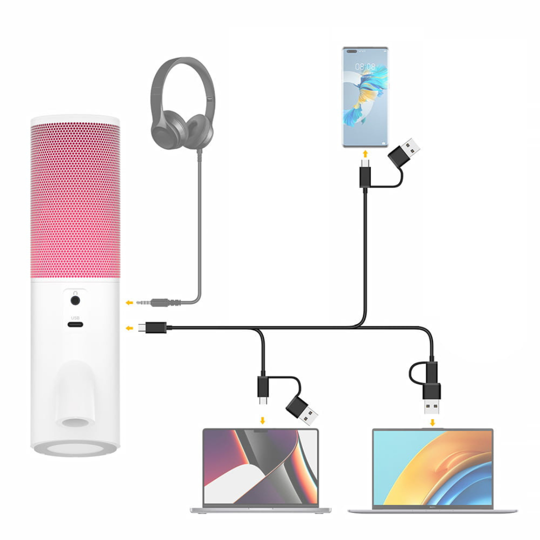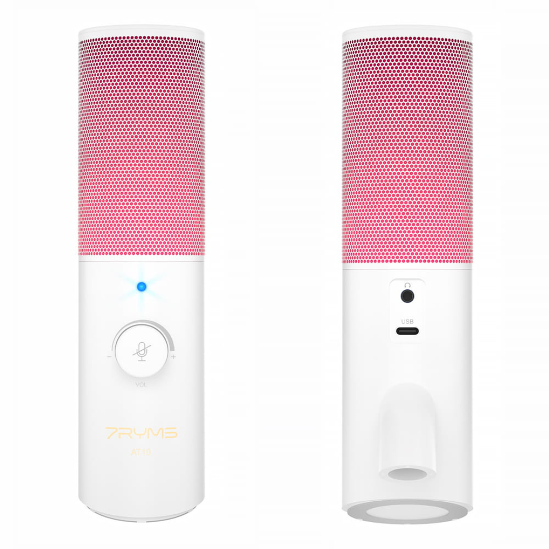 7Ryms SR-AT10 galda kondensatora mikrofons (USB-C / USB-A), ar LED RGB izgaismojumu, balts