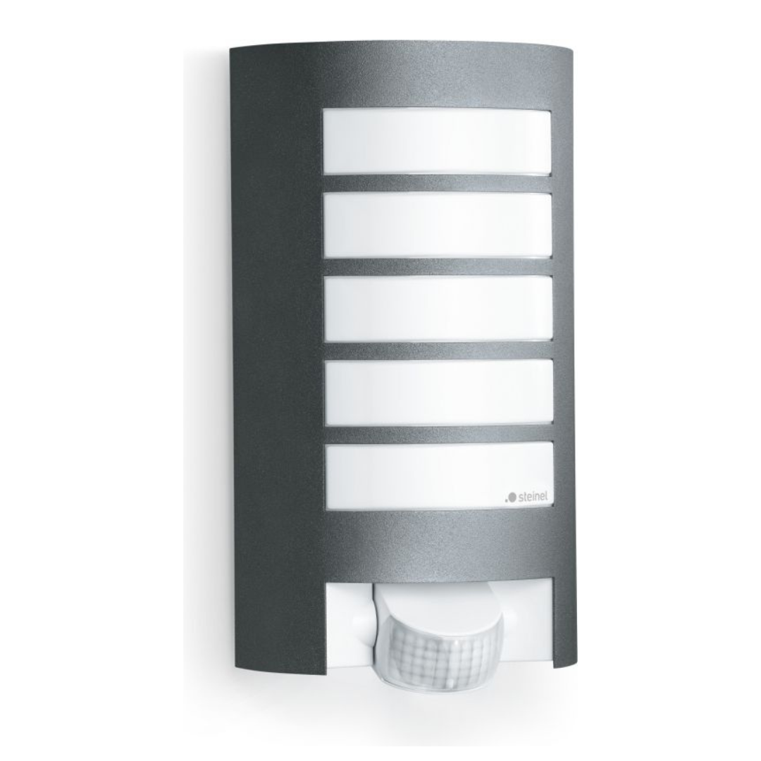 Āra sienas gaismeklis ar kustības sensoru, antracīts, E27, maksimāla jauda līdz 60W, maksimālais sensora attālums 10m un 180°, IP44, IK07, L 12 S, STEINEL