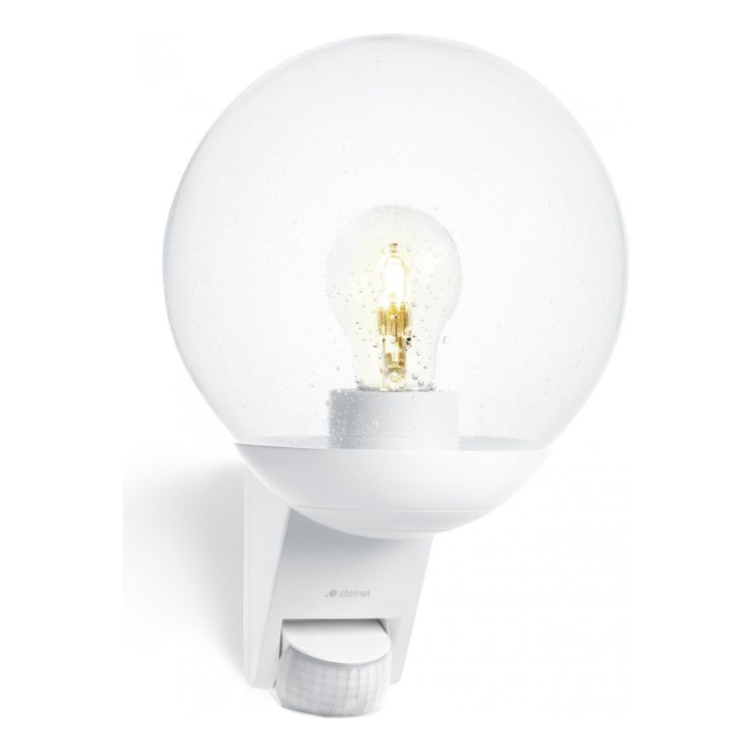 Āra sienas gaismeklis ar kustības sensoru, balts, E27, maksimāla jauda līdz 60W, maksimālais sensora attālums 10m un 180°, IP44, L 585 S, STEINEL