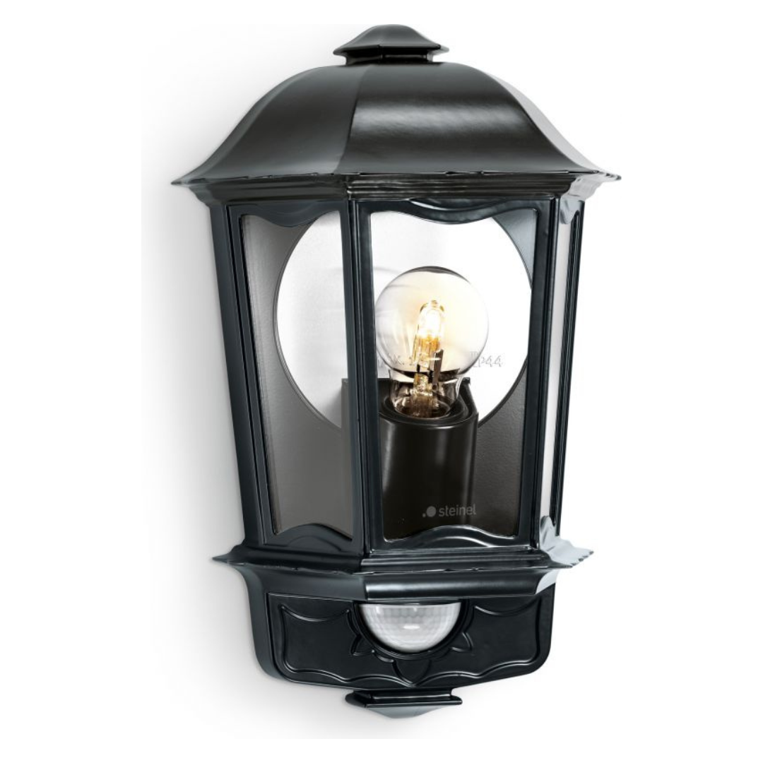 Āra sienas gaismeklis ar kustības sensoru, melns, E27, maksimāla jauda līdz 100W, sensora attālums 12m un 180°, IP44, L 190 S, STEINEL