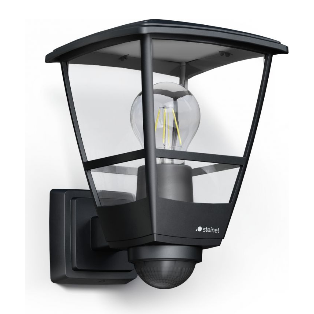 Āra sienas gaismeklis ar kustības sensoru, melns, E27, maksimāla LED jauda līdz 15W, sensora attālums 7.5m un 180°, IP44, IK07, L 10 S, STEINEL