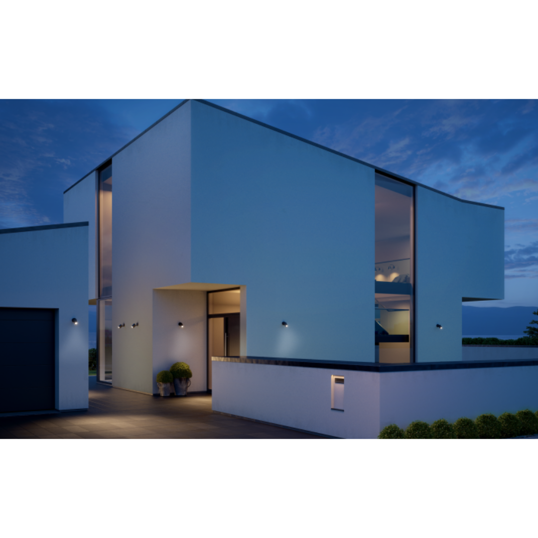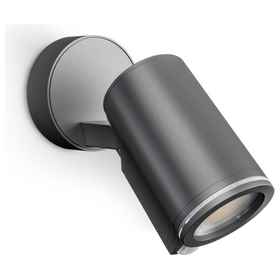 Āra sienas gaismeklis (spot) ar kustības sensoru, antracīts, GU10, ar spuldzi komplektā - 7.9W, 3000K, 512lm, IP44, sensora attālums 10m un 90°, Spot ONE S, STEINEL
