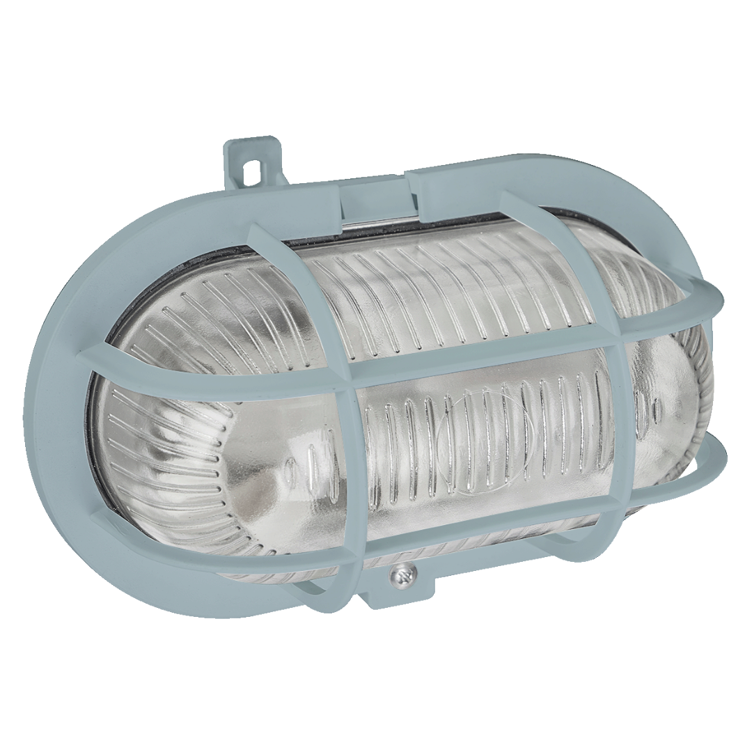 Ārējāis gaismeklis/plafons, ovāls ar resti (laiviņa), E27, maksimāli līdz 60W, IP44, pelēks