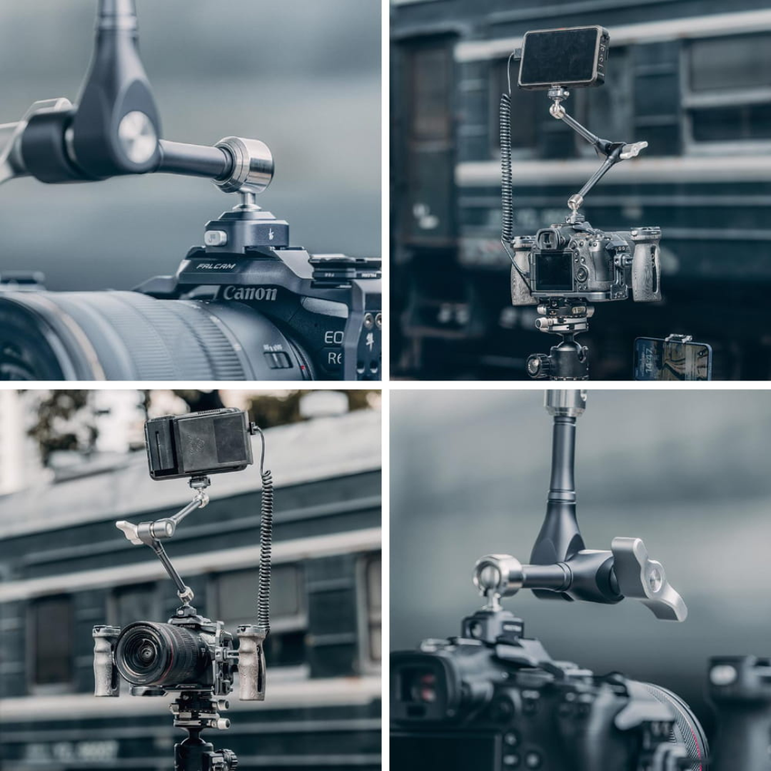 Šarnīrveida burvju roka ir nenovērtējams palīgs katrā filmas uzņemšanas laukumā. Video veidotāju īpaši novērtēts, tas ļauj brīvi sakārtot savu filmēšanas komplektu un mainīt atsevišķu tās elementu novietojumu. FALCAM turētājs piedāvā ne tikai izturību un darba precizitāti, bet galvenokārt inteliģento F22 ātrā savienojuma sistēmu, pateicoties kurai varam ātri konfigurēt mums šobrīd nepieciešamo piederumu sistēmu. F22 ātrās atbrīvošanas plāksnes ir savietojamas gan ar FALCAM sistēmas stiprinājumiem, gan ar tradicionālajiem 1/4'' vītņotajiem caurumiem. Vai meklējat universālus un pārbaudītus risinājumus? Apskati Ulanzi FALCAM piedāvājumu!