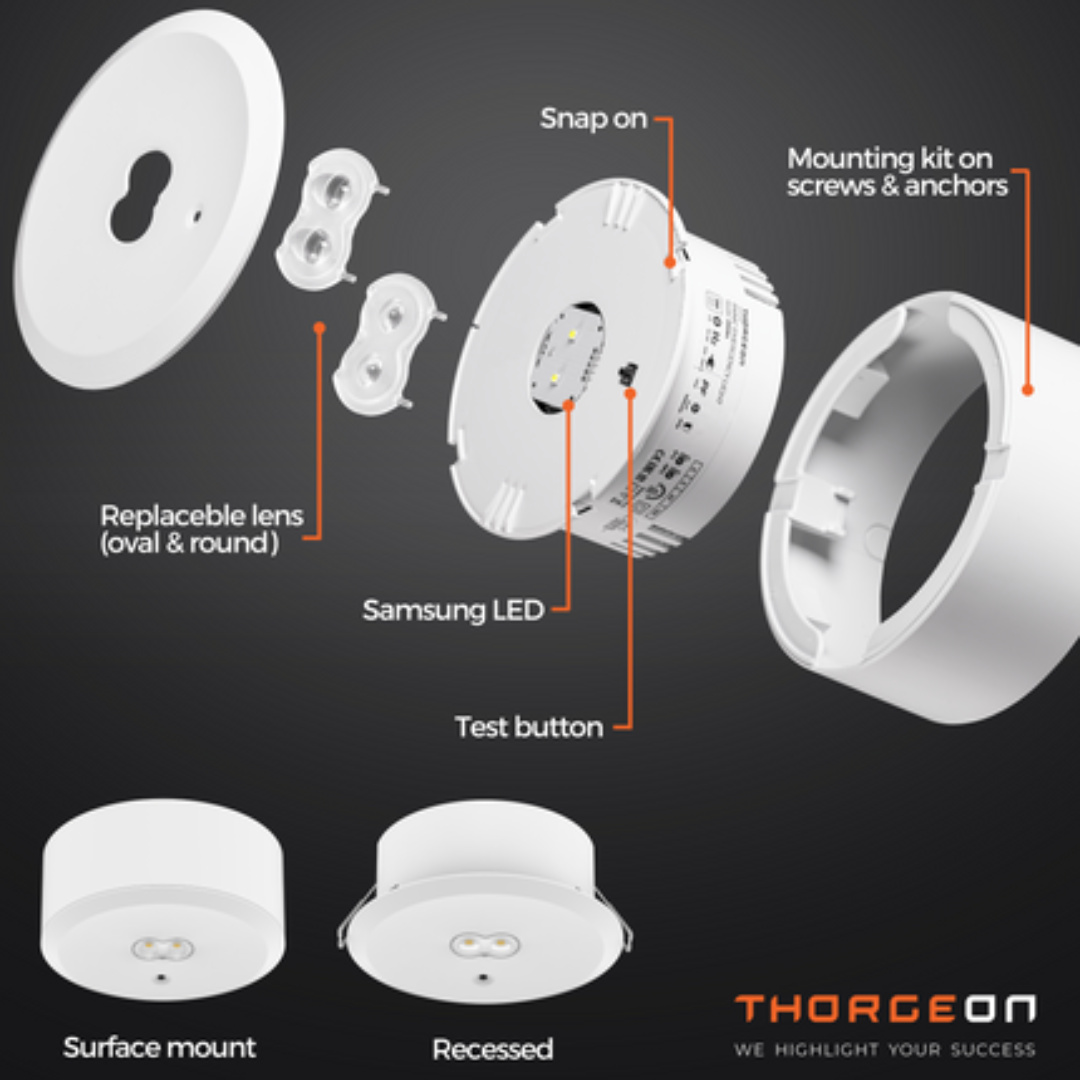 Avārijas gaismeklis Antipanik, balts, 3W, 3h, IP20, 5000K, THORGEON