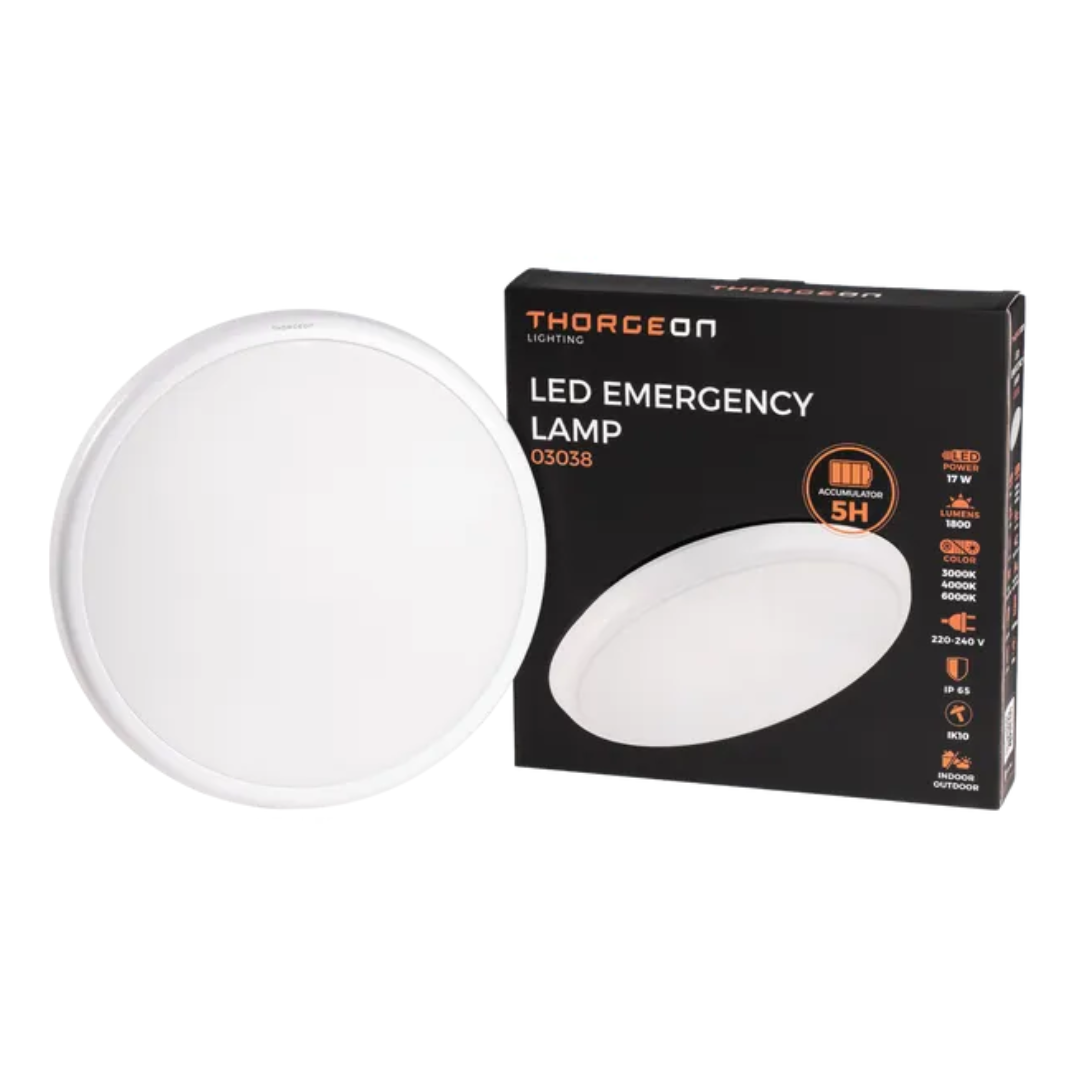Avārijas gaismeklis ROUND 17W, 5h, IP65, 3000K/4000K/6000K, THORGEON