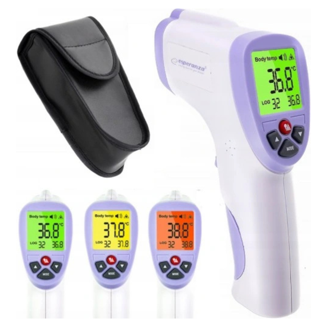 Bezkontakta medicīnas, infrasarkanais cilvēka ķermeņa termometrs ar 3 krāsu indikāciju, pieres, ar uzglabāšanas maciņu, bez baterijas (1xKrona 9V), ECT002