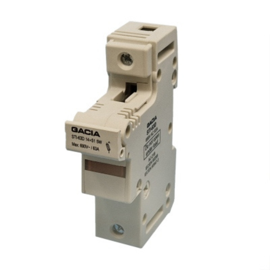 Cilindrisko drošinātāju 14x51 blokslēdzis, LED, 1P, 63A, 690V, STID-63-1, GACIA