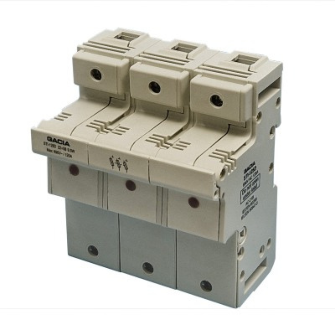 Cilindrisko drošinātāju 22x58 blokslēdzis, LED, 3P, 125A, 690V, STID-125-3, GACIA