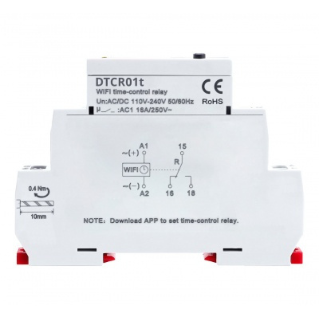 Daudzfunkcionāls WiFi TUYA laika relejs, 1CO, 16A, AC/DC, 110-230V, DTCR01t, Vexen