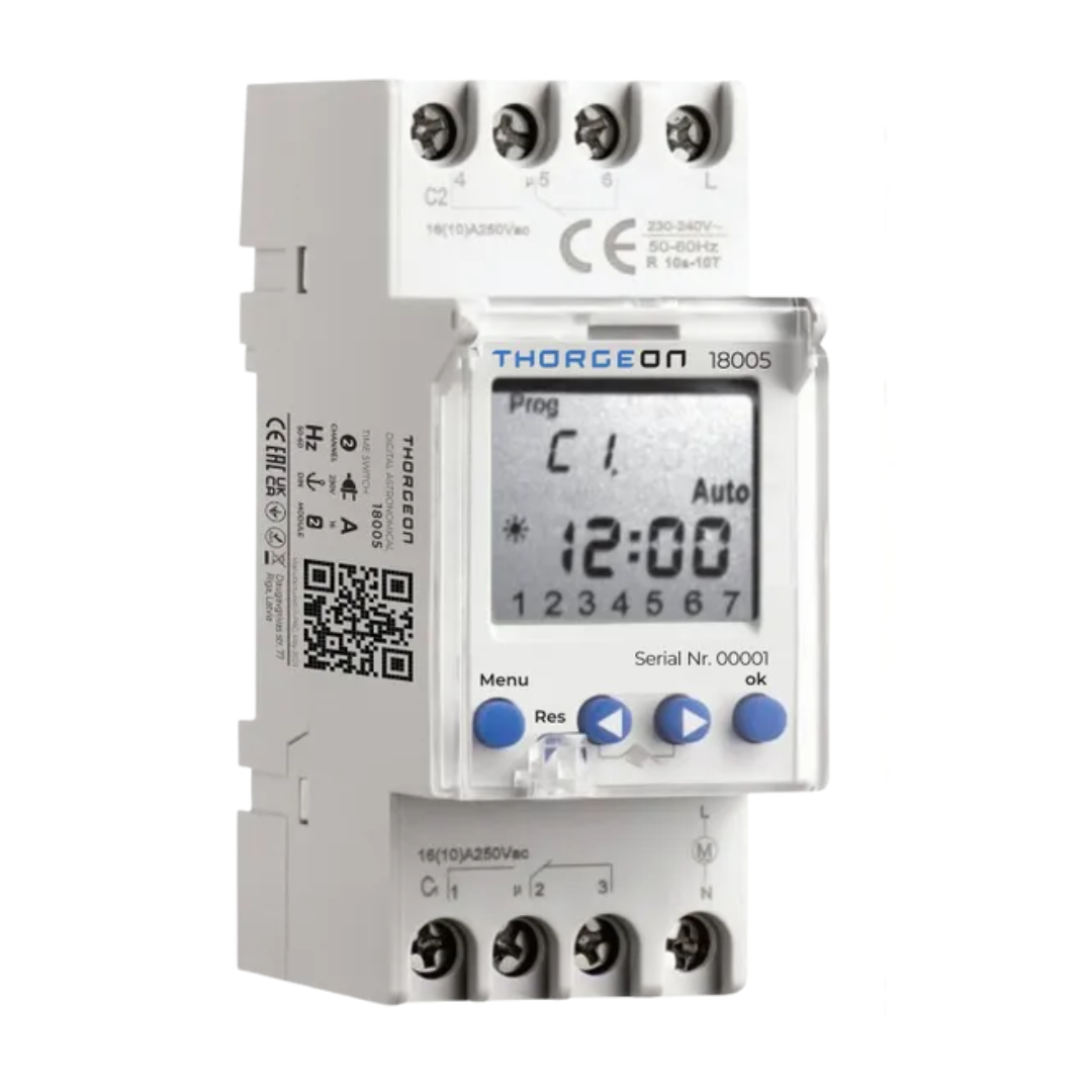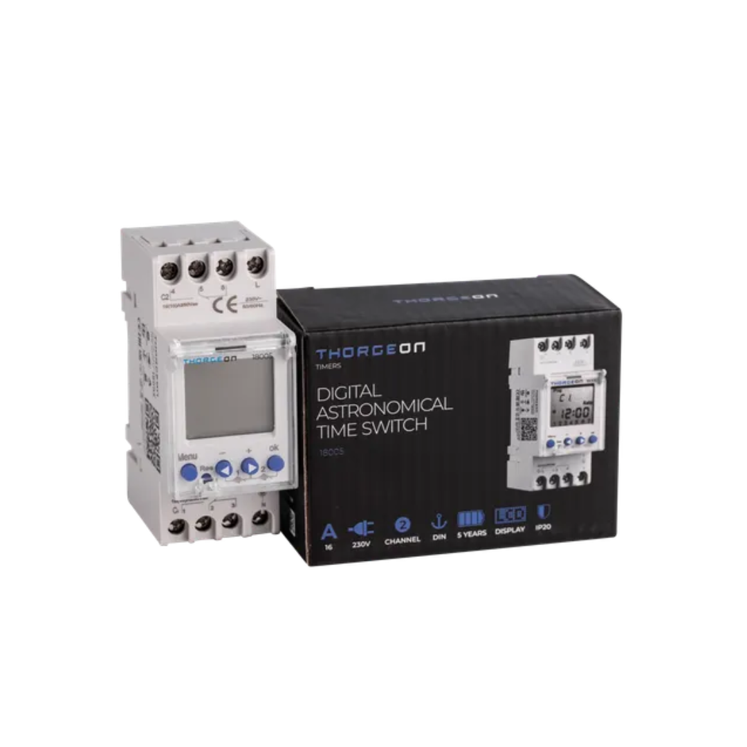 Digitālais ASTRONOMISKAIS laika relejs (taimeris) 2-kanālu, uz DIN sliedes