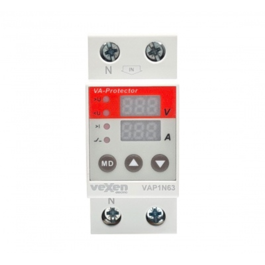 Digitālais vienfažu pārsprieguma un pārslodzes aizsardzības relejs, LN, 1CO, 63A, AC 230V, Vexen