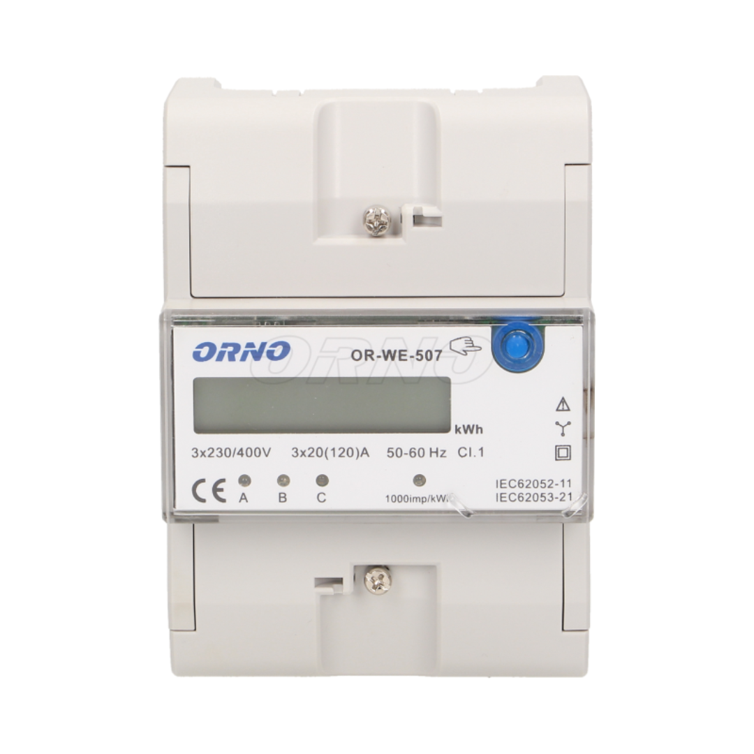 Elektroenerģijas skaitītājs 3F ar LCD displeju, aizņem 5 mod., 120A, uz DIN sliedes, OR-WE-507, ORNO