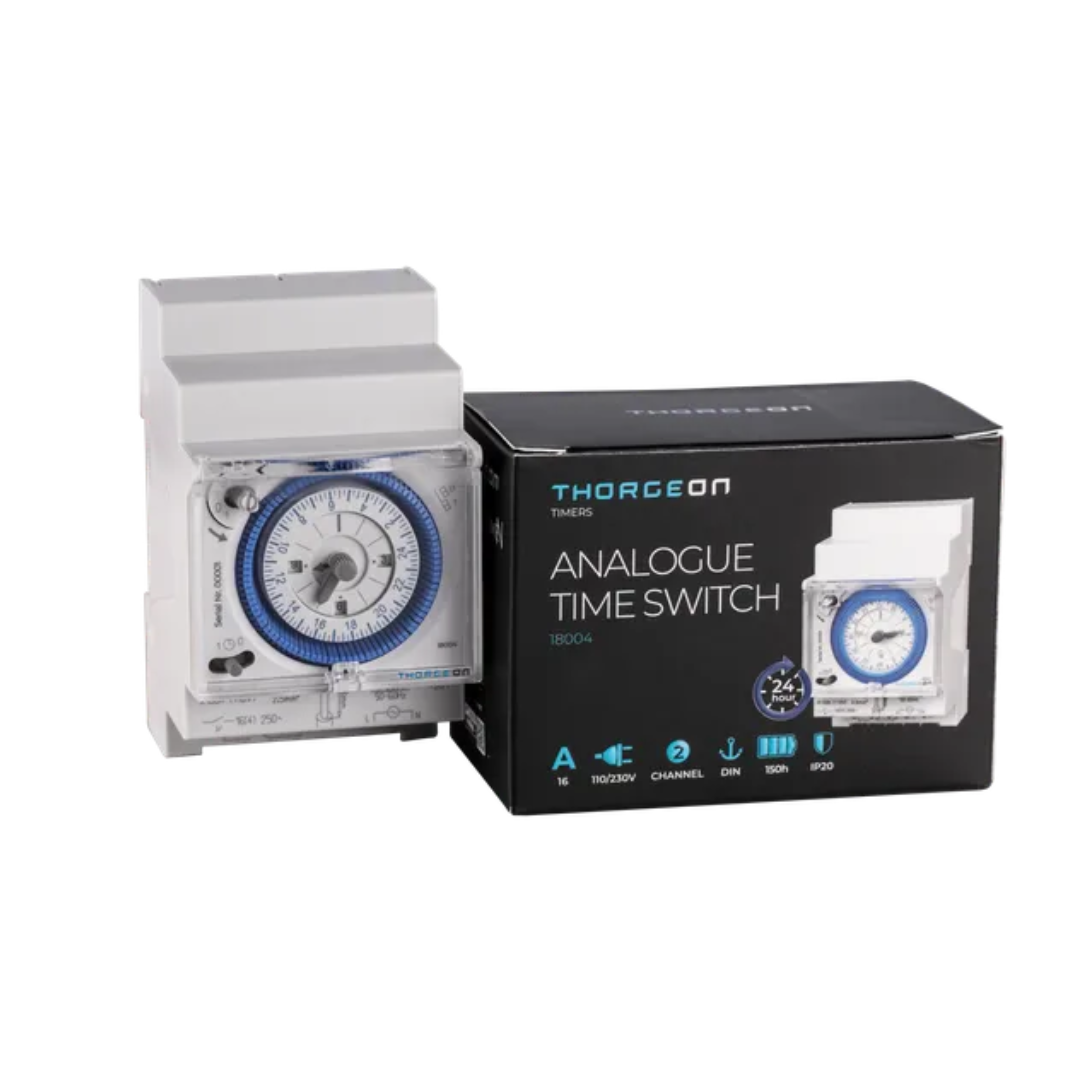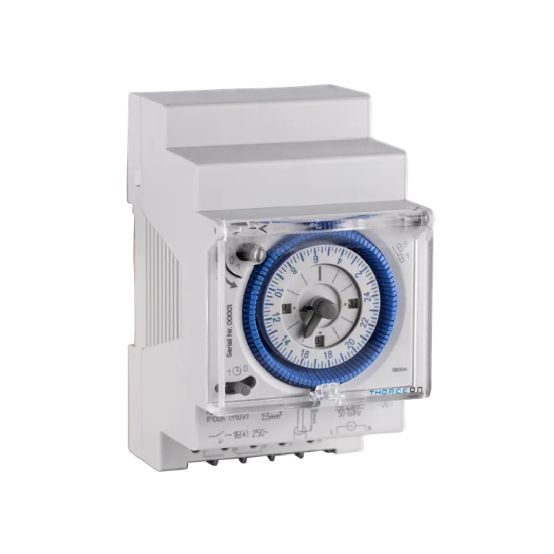 Elektromehaniskais laika relejs (taimeris) 2-kanālu 24 stundas / 15 minūtes, uz DIN sliedes