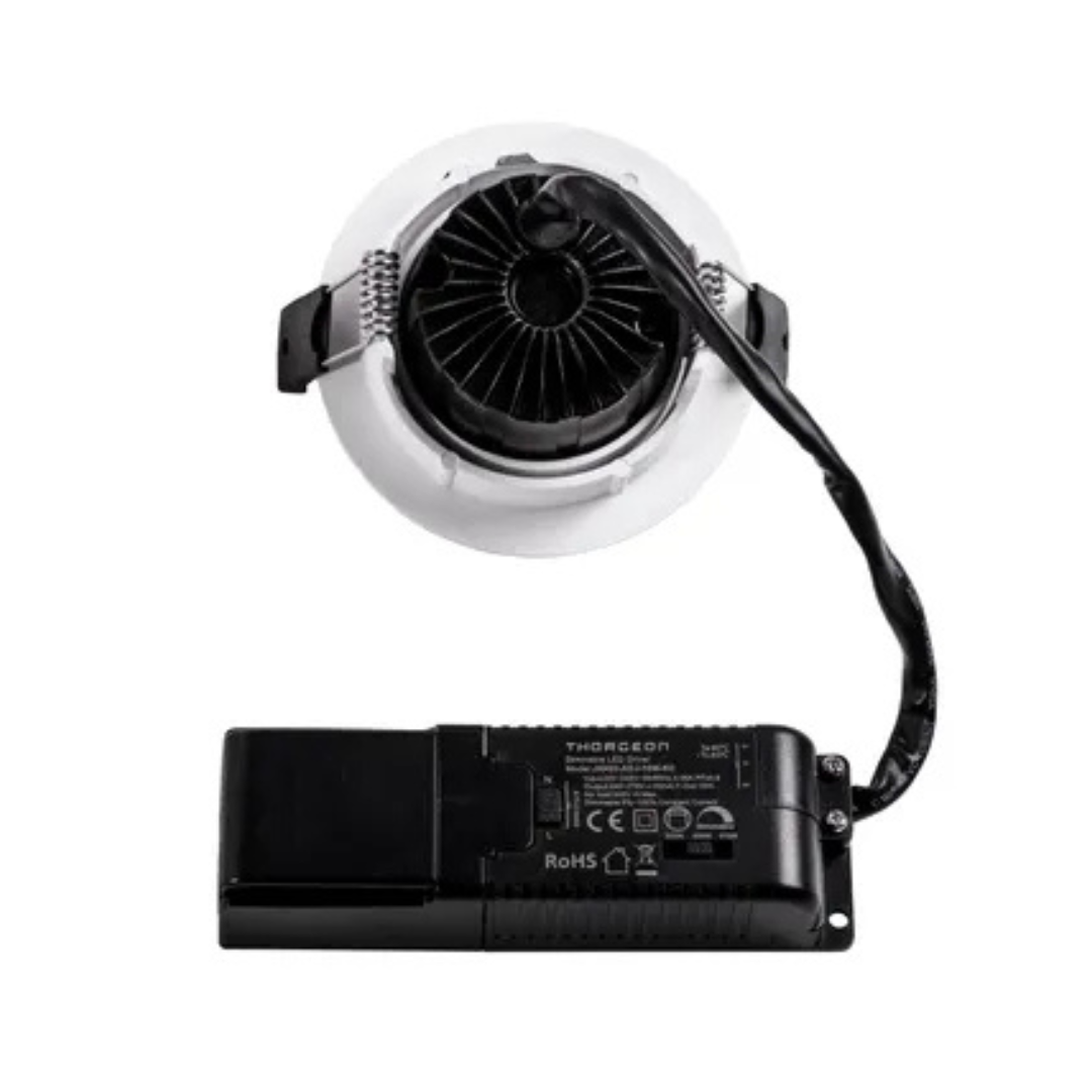 Gaismeklis LED, iebūvējams, Downlight, balts, 10W, 3000K/4000K/5700K, 800Lm, 220V, IP44, dimmējama, 83mm cauruma diametrs, THORGEON