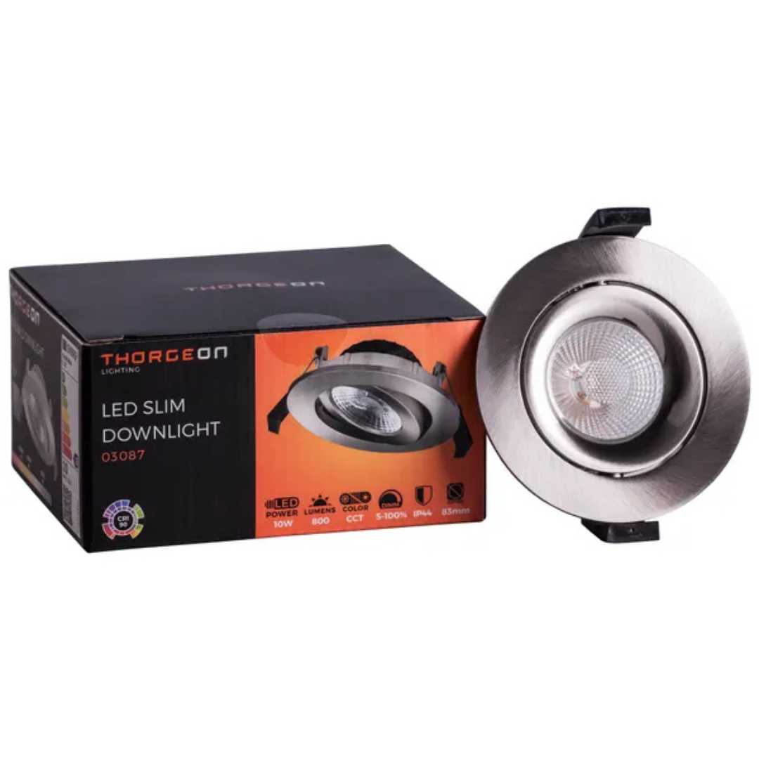 Gaismeklis LED, iebūvējams, Downlight, matēts niķelis, 10W, 3000K/4000K/5700K, 800Lm, 220V, IP44, dimmējama, 83mm cauruma diametrs, THORGEON