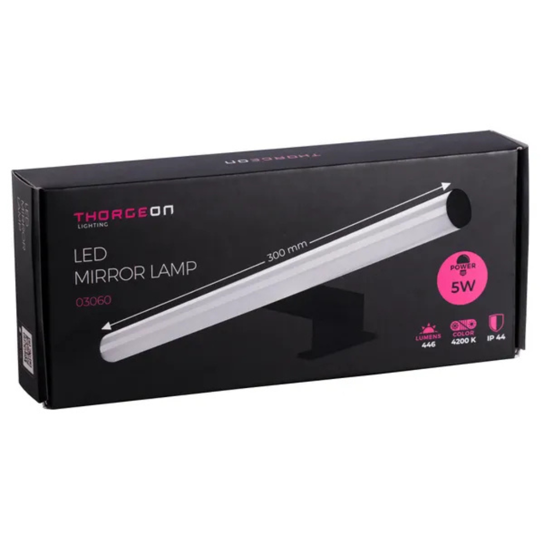 Gaismeklis LED spogulim, 5W, 446lm, 30cm, IP44, melns matēts, THORGEON