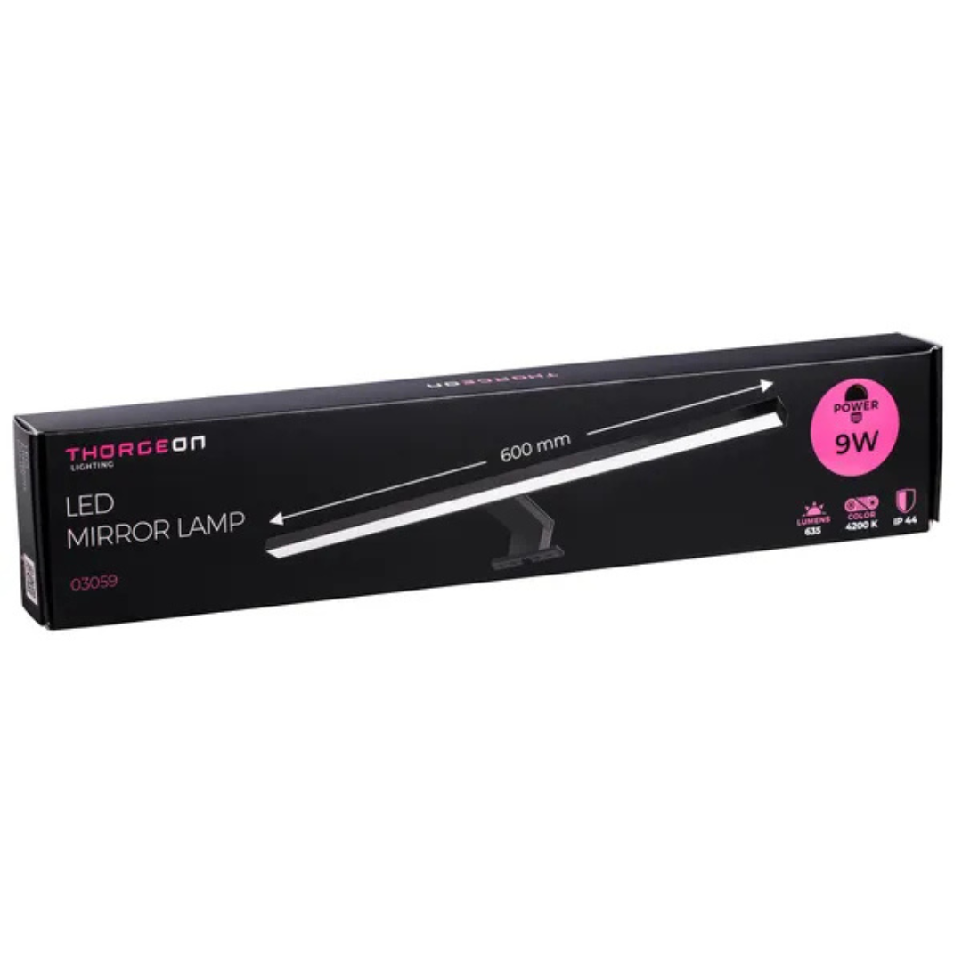 Gaismeklis LED spogulim / gleznai, 9W, 635lm, 60cm, IP44, melns matēts, THORGEON