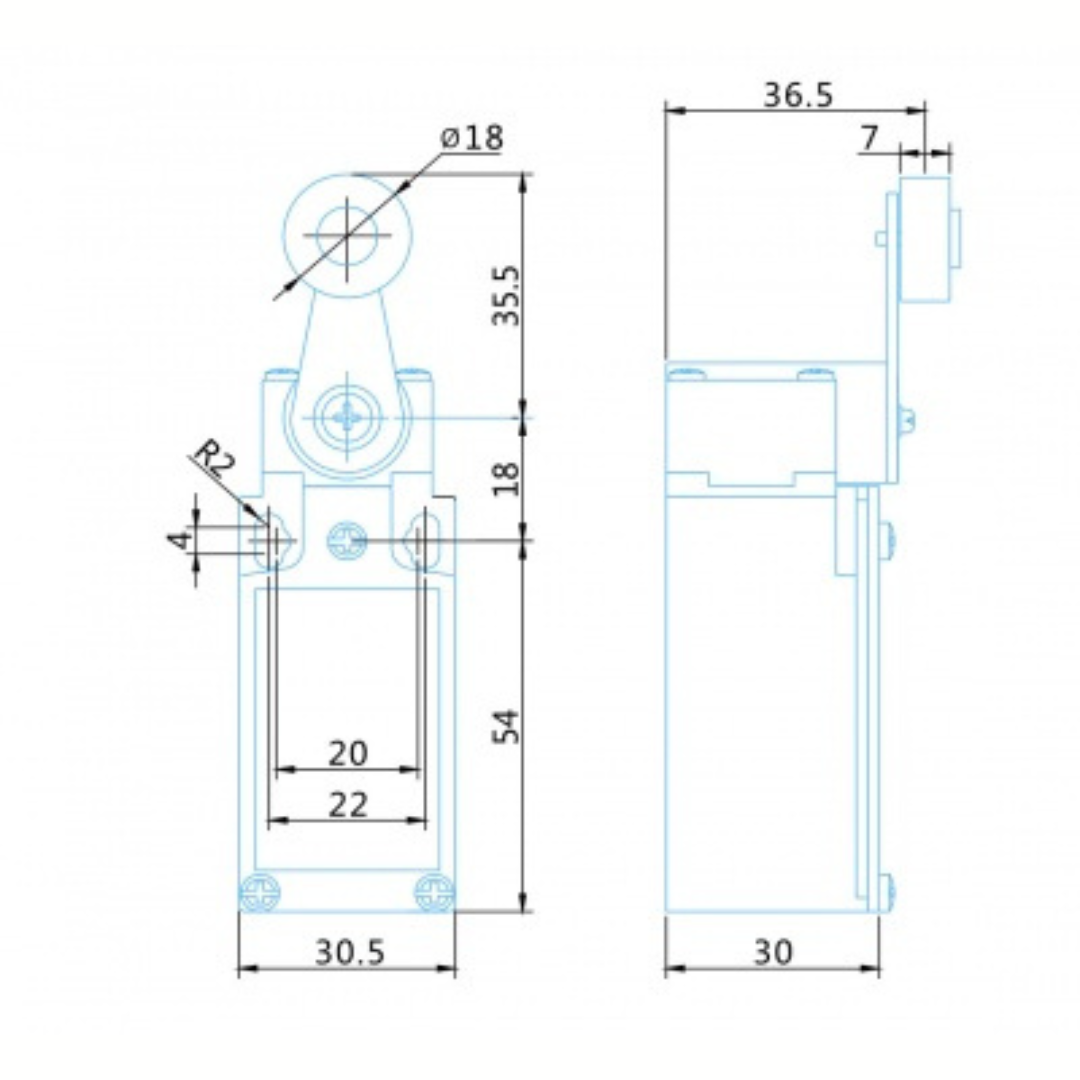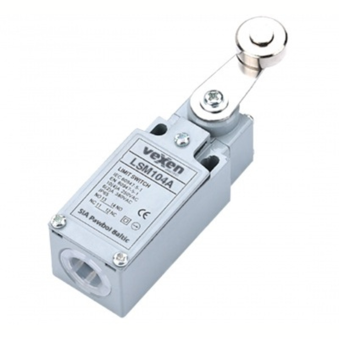 Gala slēdzis 1NO/1NC metāliskajā korpusā, IP65, ar metālisko rullīti - sviru, LSM104A, VEXEN