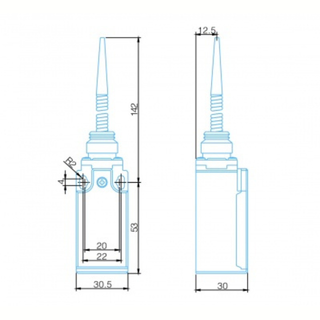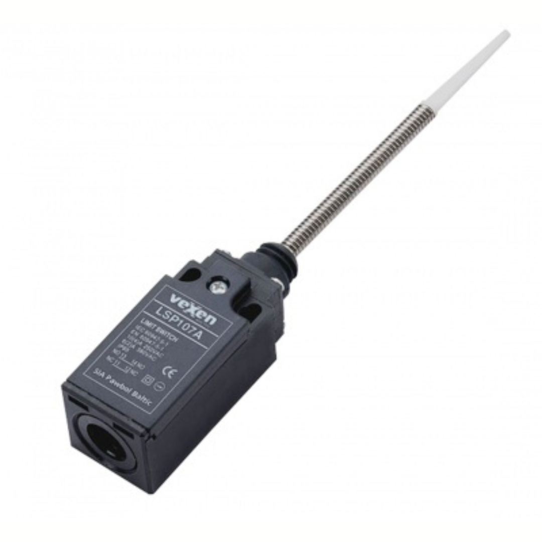 Gala slēdzis 1NO/1NC plastmasas korpusā, IP65, ar atsperes stieņa sviru un plastmasas uzgali, LSP107A, VEXEN