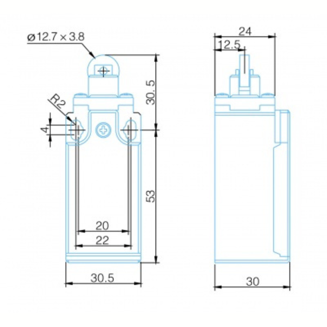 Gala slēdzis 1NO/1NC plastmasas korpusā, IP65, ar metāla rullīti, LSP102A, VEXEN