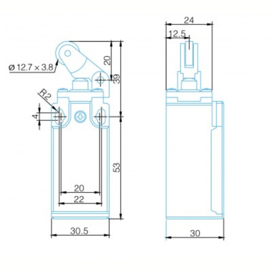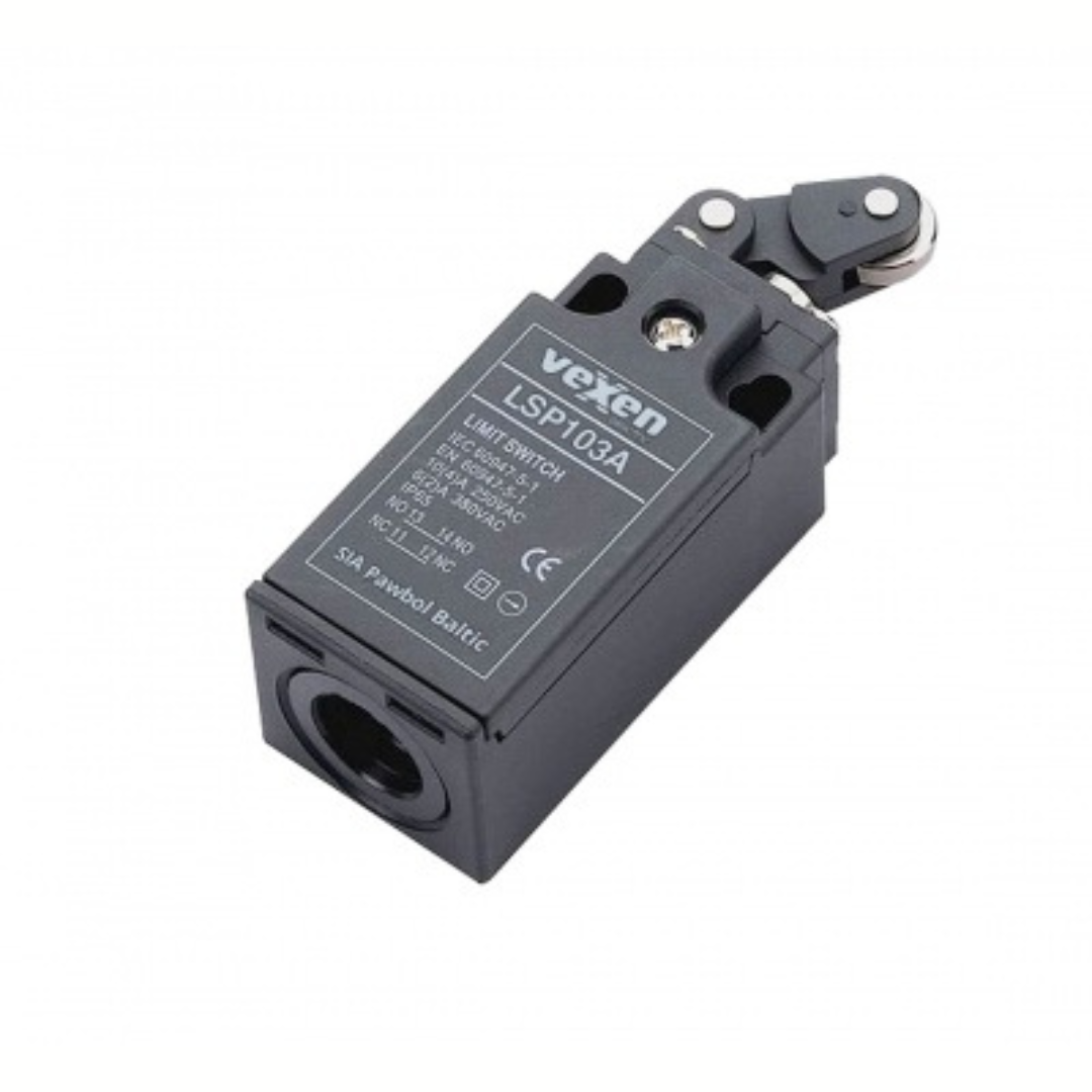 Gala slēdzis 1NO/1NC plastmasas korpusā, IP65, ar virzuli un metāla rullīti, LSP103A, VEXEN