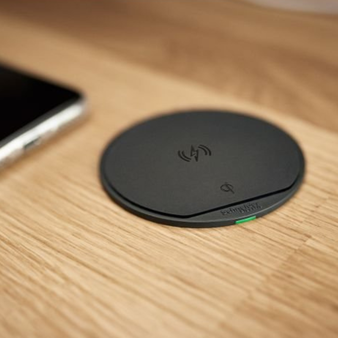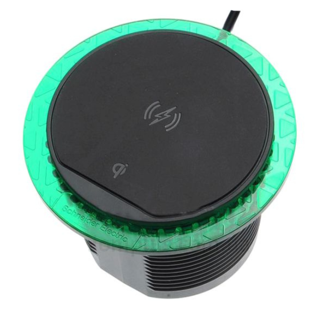 Galdā iebuvējams bezvadu lādētājs 5W (60 mm caurumā), melns, ar LED un skaņas indikatoru, INS44010, Unica sistēma+, Schneider Electric