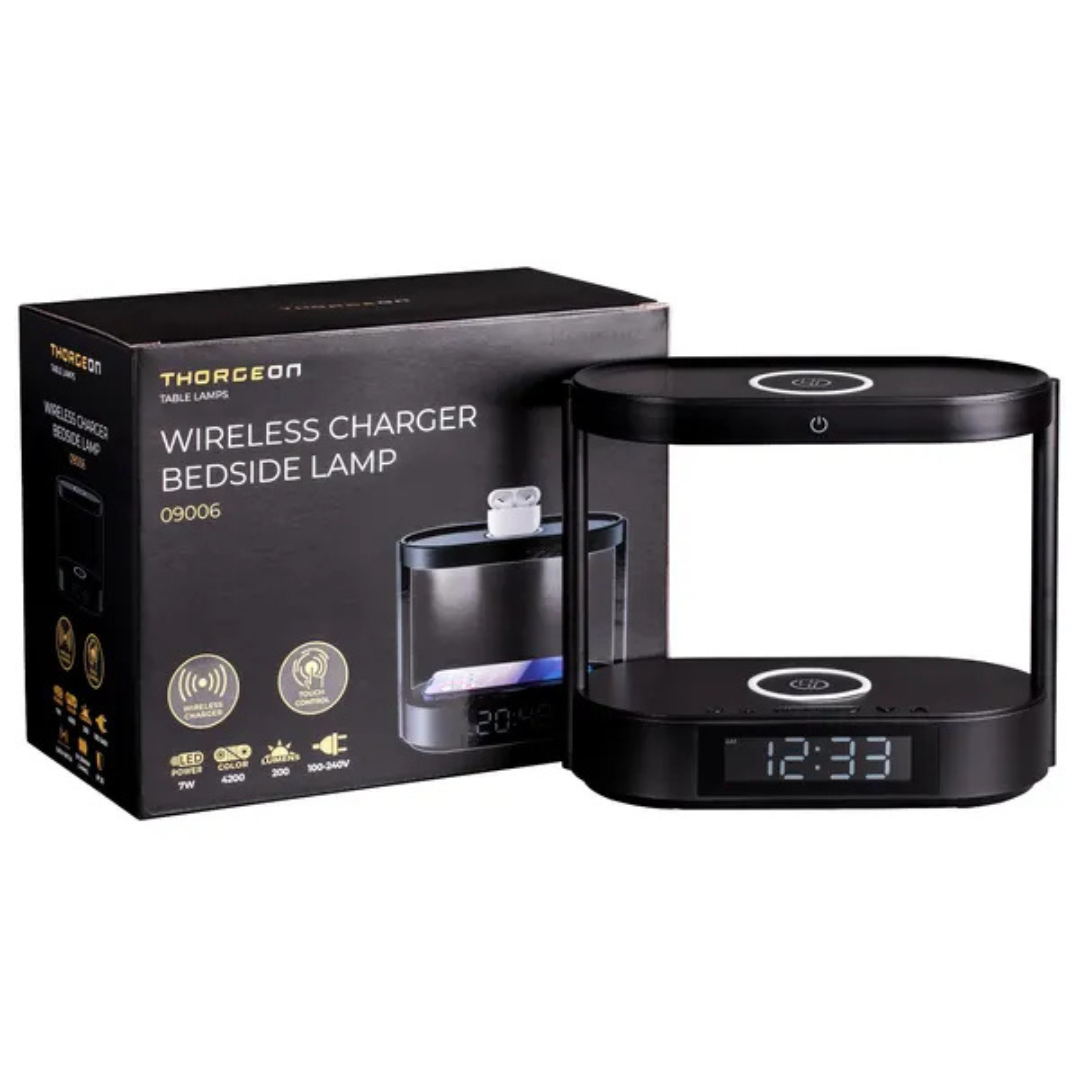Galda lampa LED 7W (200lm) ar 2 bezvadu ladētājiem un pulksteni, THORGEON
