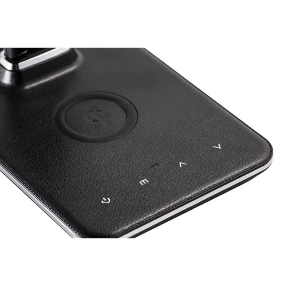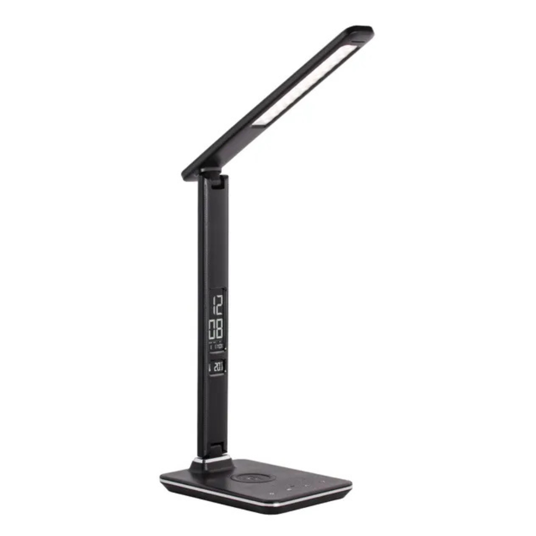 Galda lampa LED, 9W, ar bezvada ladētāju (Wireless charge), var regulēt spožumu (Dimmable) un spektru 2800K-6000K, ar pulksteni un telpas termometru, THORGEON