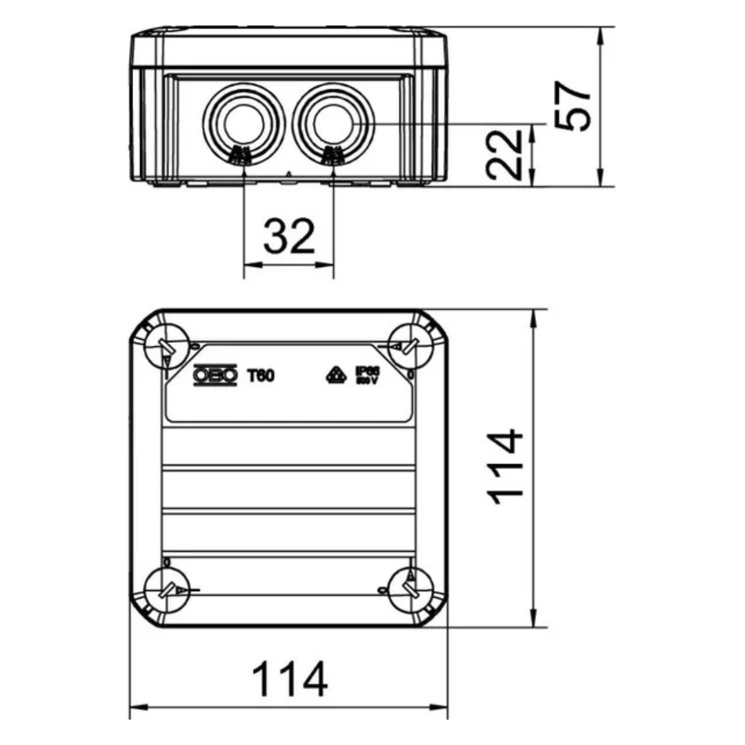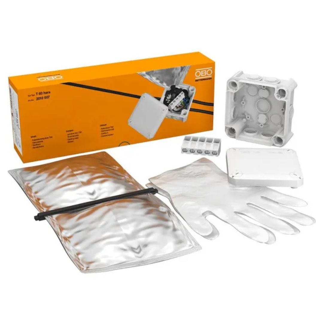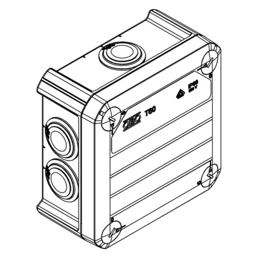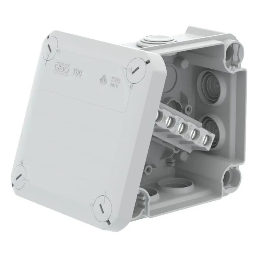 Instalācijas kārba T 60, 114x114x57mm, PP, gaiši pelēka, iespraužama blīve, spaiļu līste, izolācijas sveķi, Obo Bettermann