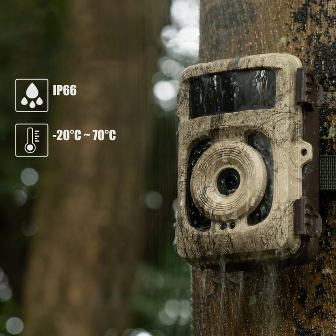Kameras slazdam ir liels, krāsains LCD displejs, kas paslēpts iekšpusē un aizsargāts pret mitrumu ar gumijas blīvējumu un diviem cietiem sānu āķiem. Ierīces hermētiskuma klase ir IP66. Galvenā izvēlne ir vienkārša un skaidra, tādēļ kameras lietošana un iestatījumu maiņa ir ļoti intuitīva. Zem ekrāna ir astoņas vadības pogas. Zem tiem ir mini USB ports, SD atmiņas kartes ports un OFF/Test/ON slēdzis. Darba parametru maiņa tiek veikta testa režīmā. Pārslēdzoties uz ON režīmu, tiek aktivizēta gaidstāves sistēma. Kamera var uzņemt fotoattēlus, ierakstīt video un darboties režīmā, kas apvieno abas funkcijas. Iebūvētais mikrofons ļauj ierakstīt video ar skaņu. Ieraksti var būt no 3 sekundēm līdz 10 minūtēm gari. Ierīce piedāvā arī nepārtrauktas uzņemšanas režīmu (2, 3 vai 10 kadri), timelapse un iepriekš minēto nakts režīmu (infrasarkanais / IR). Tas nozīmē, ka skaidru un salasāmu attēlu var ierakstīt pat naktī vai ļoti slikta apgaismojuma apstākļos (kustības sensora darbības rādiuss infrasarkanajā režīmā ir maksimāli 20m). Kustības sensora reakcijas laiks ir 0,2 s – kamera sāk darboties gandrīz uzreiz, tāpēc varam ierakstīt praktiski jebkuru kustību. Sensora jutība ir arī regulējama, kas palīdz izvairīties no nejaušas aktivizēšanas, ko izraisa vēja brāzmas vai lapu kustība.
