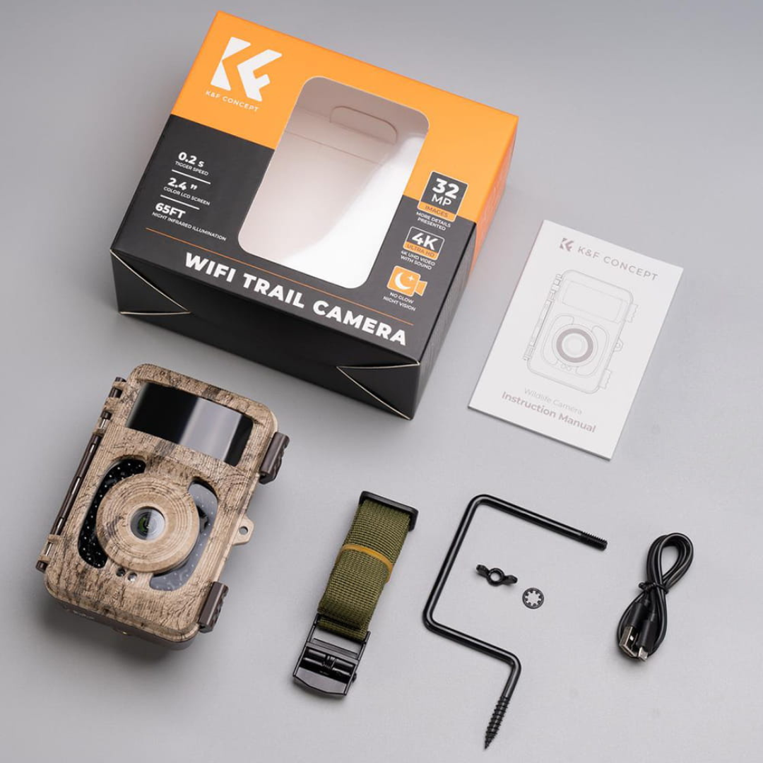 K&F Concept KF35.128 meža kamera ir uzlabota kameru slazda, kas piedāvā iespēju ierakstīt attēlus un skaņu, kas paredzēta savvaļas dzīvnieku novērošanai. Tam ir 32 MP matrica. Objektīvs ar 120° skata leņķi un sensors, kas reaģē uz kustību no maksimālā attāluma 24 m (80 pēdas), ļauj to izmantot dažādos reljefos, savukārt iebūvētais Bluetooth modulis ļauj nosūtīt attēlus uz tālruni, izmantojot speciālu aplikāciju līdz 20 m attālumā. Lietojumprogrammu var lejupielādēt, izmantojot QR kodu, kas norādīts sākotnēji iekļautajā instrukcijā. Kamera ļauj ierakstīt video 4K UHD kvalitātē, pilnu ar detaļām un dabiskām krāsām. Tas var darboties arī nakts redzamības režīmā, ierakstot infrasarkanos attēlus. Kustības sensora efektivitāte ir atkarīga no esošajiem reljefa šķēršļiem.
