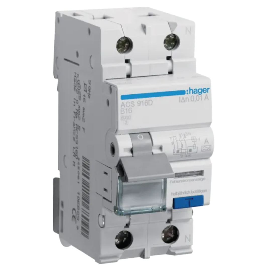 Kombinētais strāvas noplūdes automātslēdzis 1P+N 6kA B16 10mA, A type, QC, HAGER