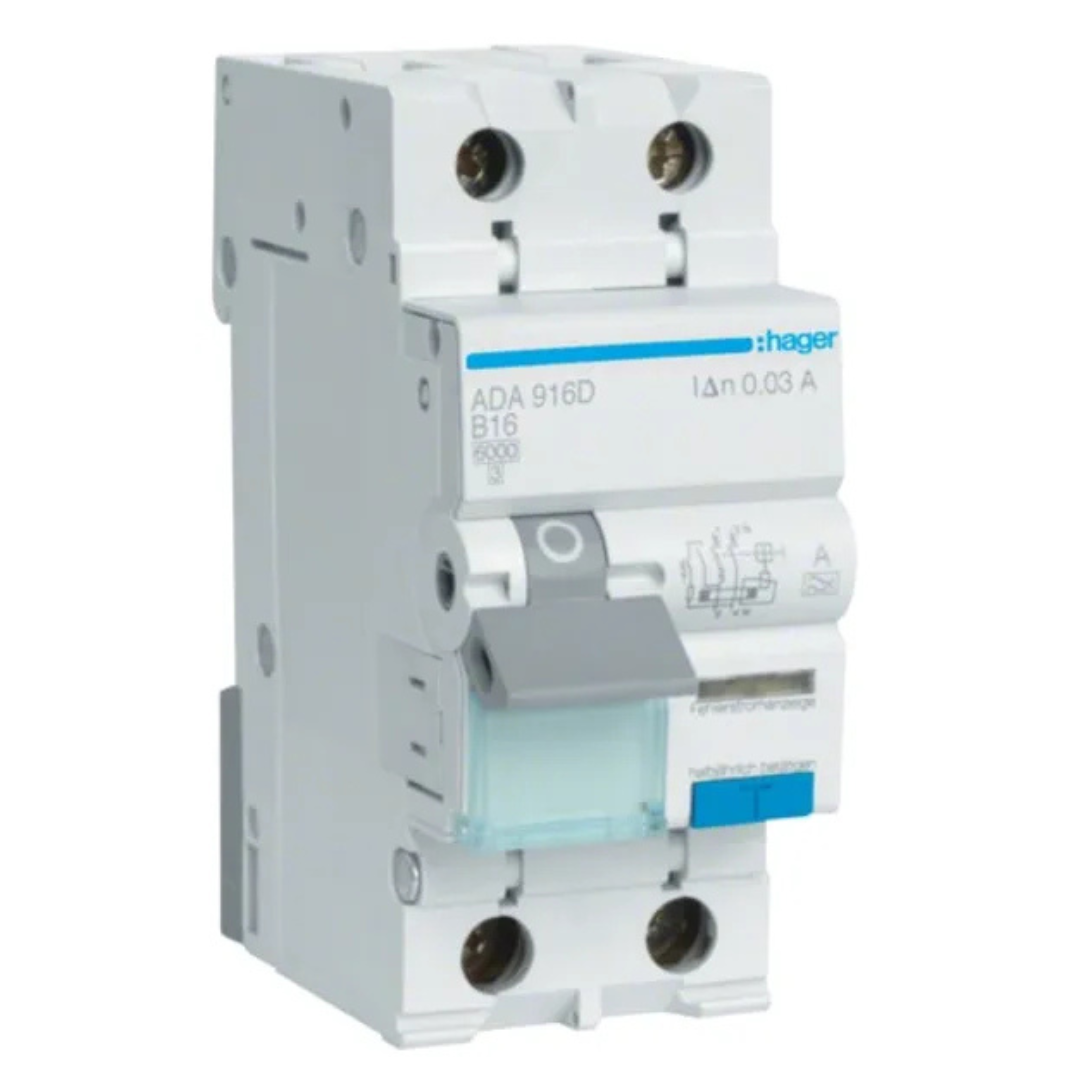 Kombinētais strāvas noplūdes automātslēdzis 1P+N 6kA B16 30mA, A type, HAGER