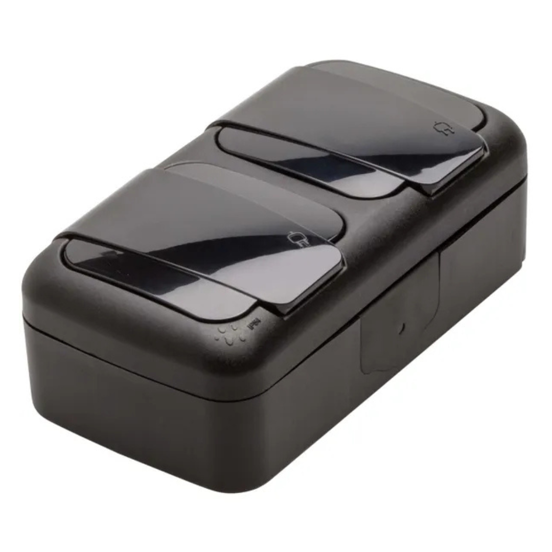 Kontaktligzda 2-vietīga a/z IP54, melna, virsapmetuma, VIKO
