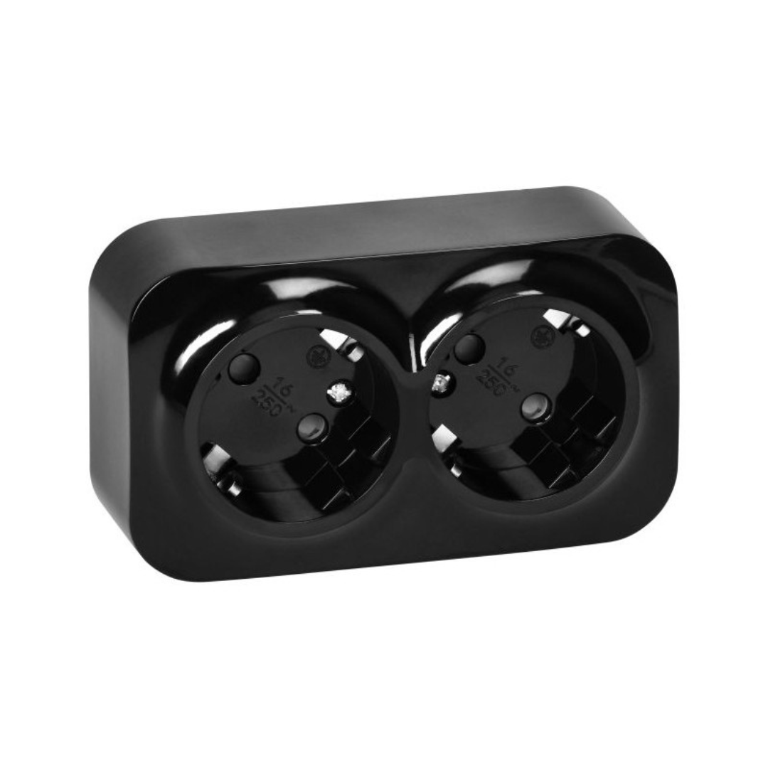 Kontaktligzda 2-vietīga a/z, virsapmetuma, melna, ORNO / TIMEX