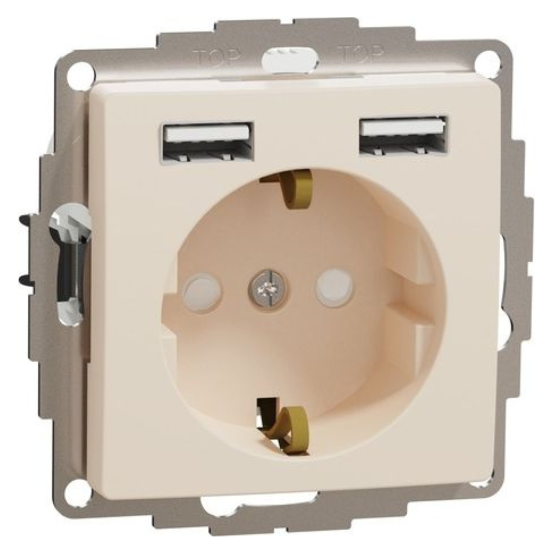 Kontaktligzda a/z ar 2xUSB (A+A), bēšs, Sedna Design