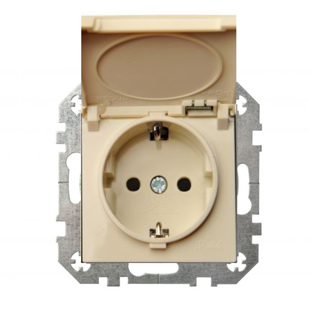 Kontaktligzda a/z ar vāku IP44, smilškrāsa, Liregus EPSILON