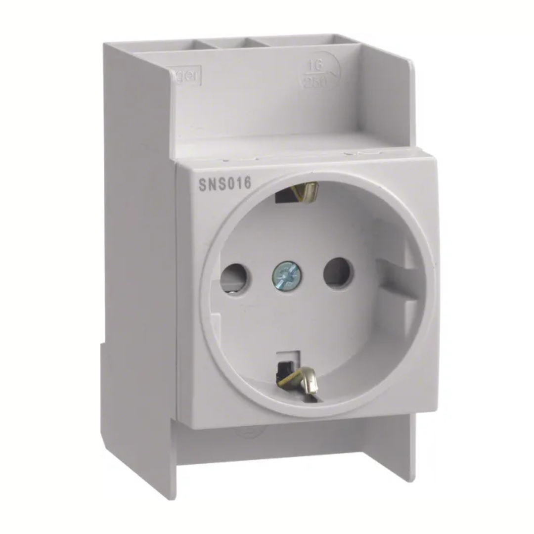 Kontaktligzda uz DIN sliedes, 16A, Schuko, QC, HAGER