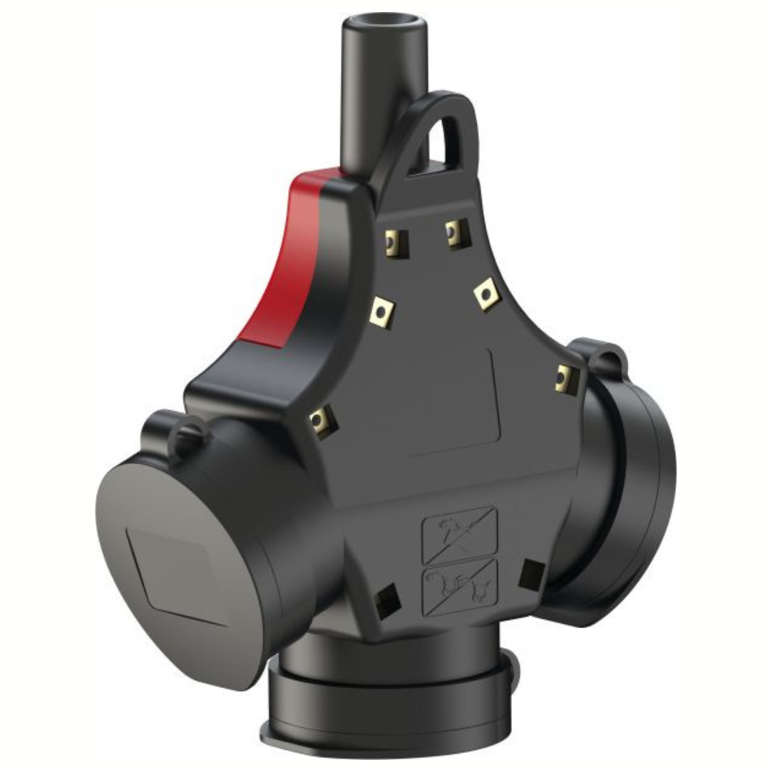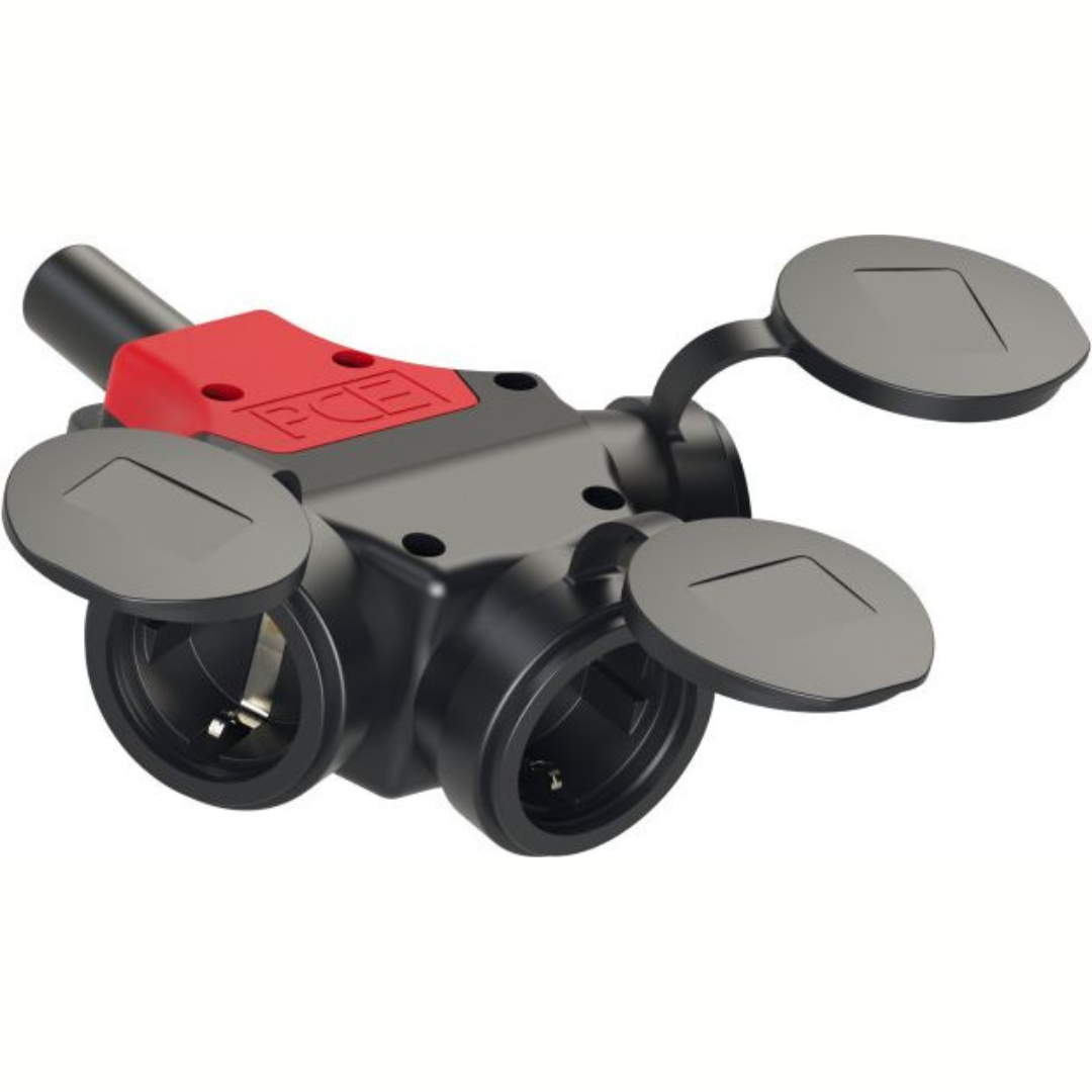 Kontaktligzda vadam 3-vietīga ar pieslēgumu 3 atsevišķām fāzēm, IP44, 16A, 250V, 3p (2P+E), melna ar sarkanu, PCE