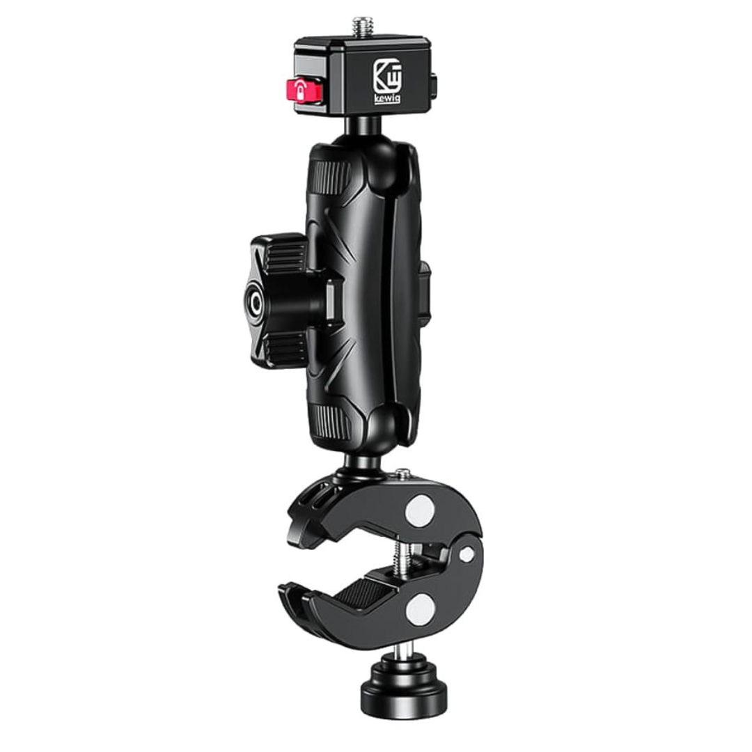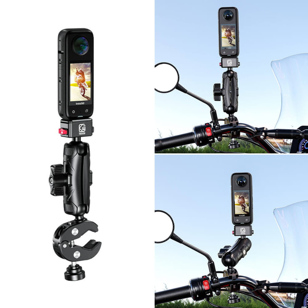 Standarta 1/4" vītne nodrošina saderību ar sporta kamerām, tālruņu turētājiem un kompaktajām LED lampām. Plašais skavas regulēšanas diapazons 16-45 mm ļauj ērti piestiprināt turētāju pie stūres, margām, statīviem un citiem cilindriskiem elementiem.