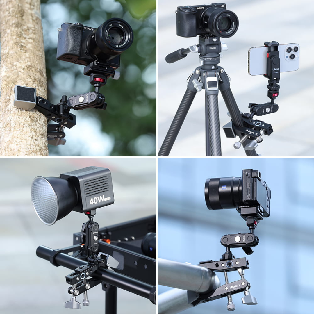 Ulanzi CU03 ir ideāls rīks profesionāliem foto un video veidotājiem, kas ļauj stabili piestiprināt kameras, kameras, LED gaismas un citas ierīces uz dažāda veida virsmām, piemēram, galdiem, statīvu kolonnām vai margām. Pateicoties rokai ar lodīšu gultņiem, lietotājam ir pilnīga brīvība precīzi iestatīt aprīkojumu jebkurā leņķī. Papildu stiprinājumi ļauj paplašināt komplektu ar vairākiem piederumiem, padarot CU03 par ārkārtīgi daudzpusīgu risinājumu studijā un ārā.