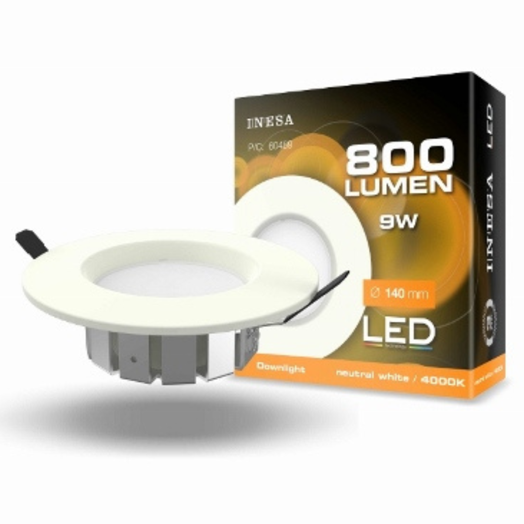 LED gaismeklis iebuvējams griestos 9W, d 124mm, 800lm, 3000K, INESA