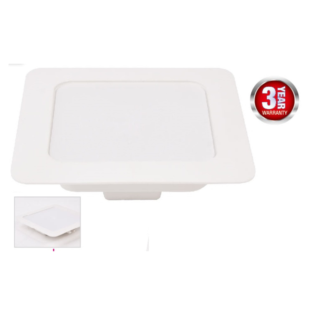 LED Gaismeklis iebūvejams kvadrāts, 6W, 200-240V, 480lm, 3000K, IP20, plastmasas korpuss, 120.7x120.7x33mm, balts