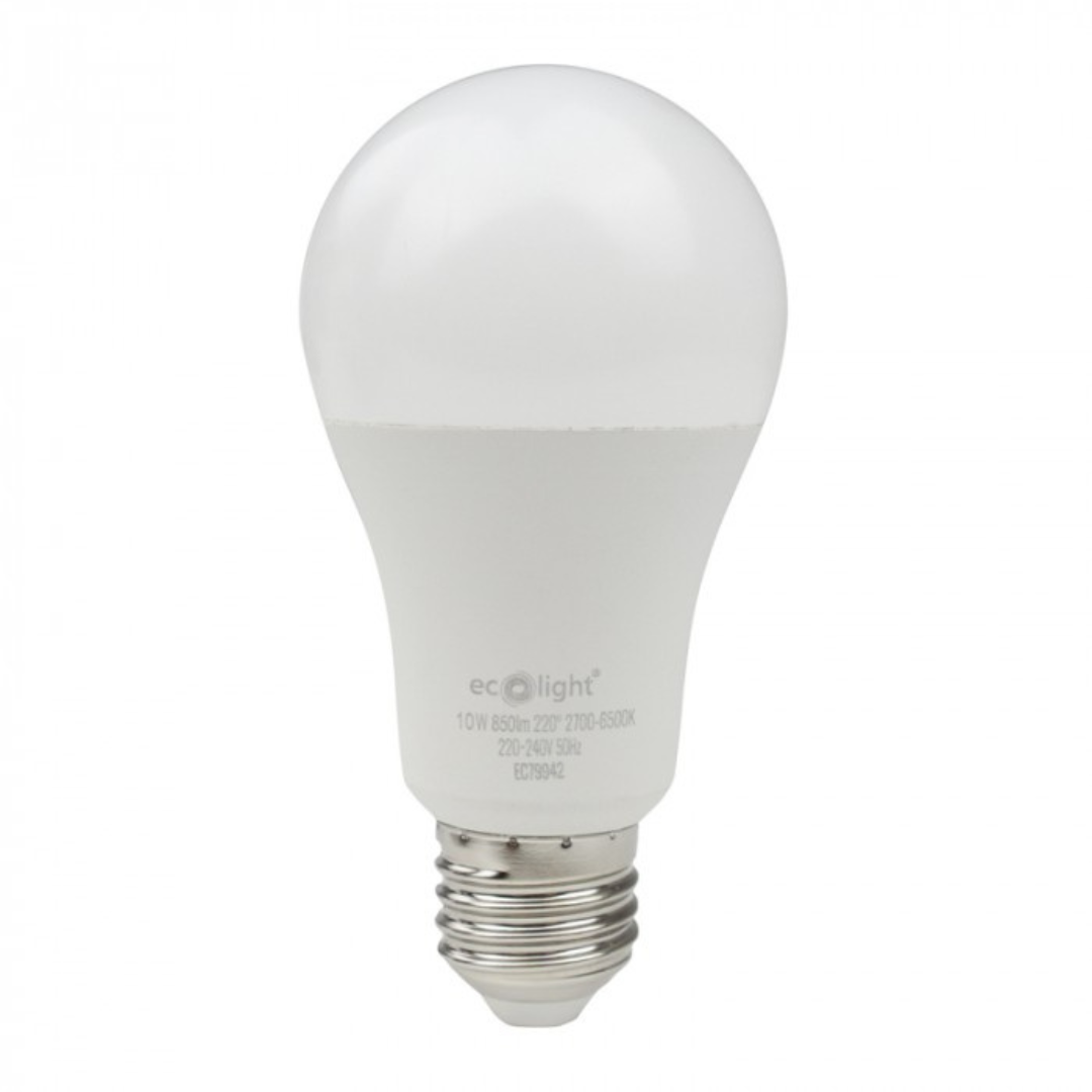 LED spuldze 10W, E27, A60, 850Lm, 2700-6500K + RGB, 220-240V AC, WiFi, ar vadības iespēju no telefona - Tuya, ECOLIGHT